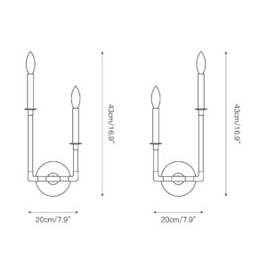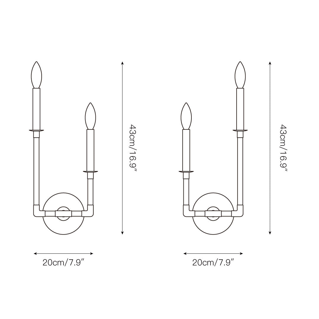 2 Leuchtenköpfe (links) D 20 cm x H 43 cm / ∅ 7,9″ x H 16,9″.