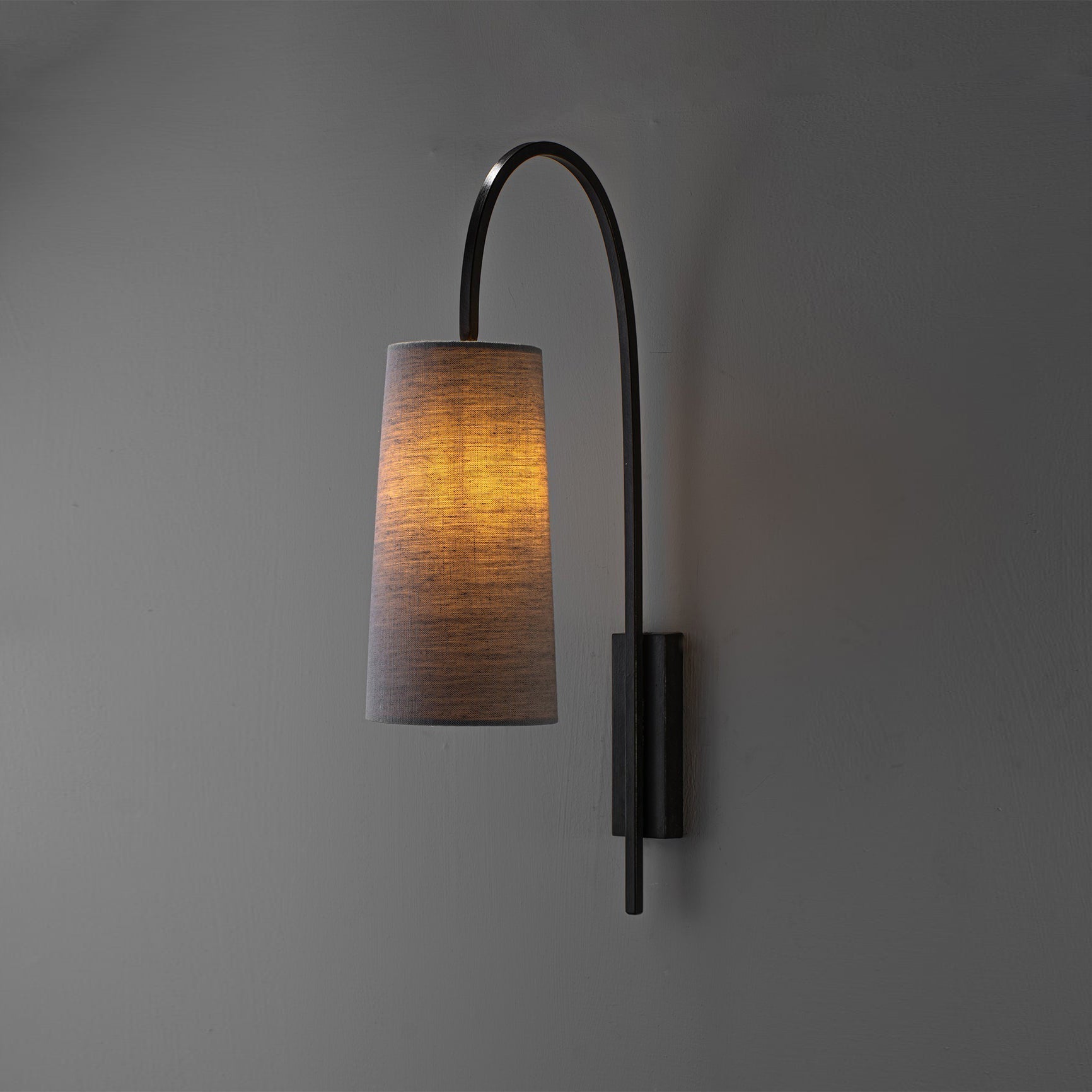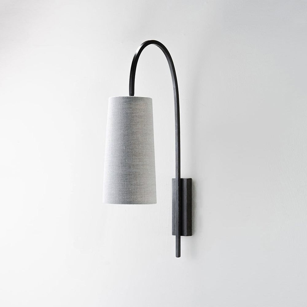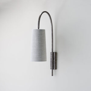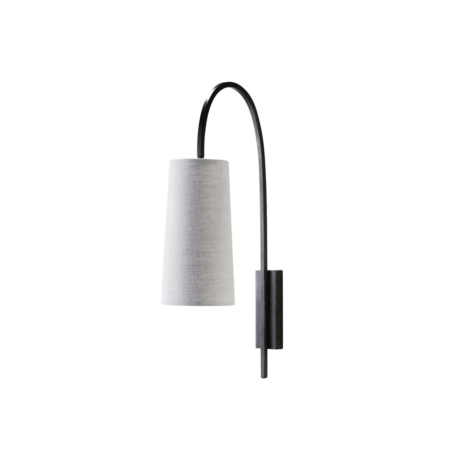 Lampenkörper aus Eisen. Stoffschirm.